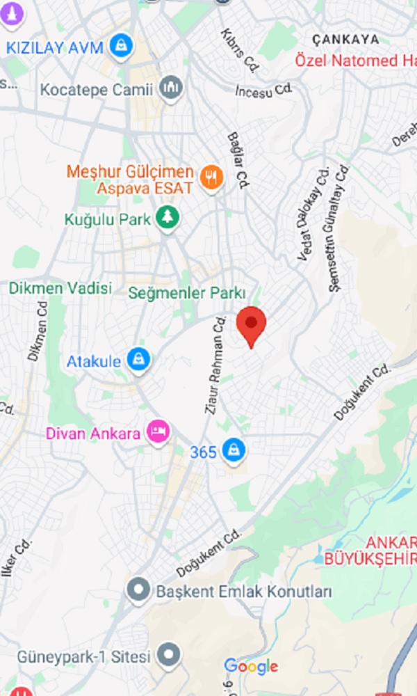 Otelimiz Ankara’nın Çankaya ilçesinde bulunmakta olup merkezi konumu itibari ile bir çok kurum, iş ve alışveriş merkezine yakın konumda yer almaktadır. Otelimiz Atakule’ye 2km, Tunalı’ya 4km, Kızılay’a 6km, Anıtkabir’e 15km, Esenboğa Havalimanı’na 30km mesafede yer almaktadır.